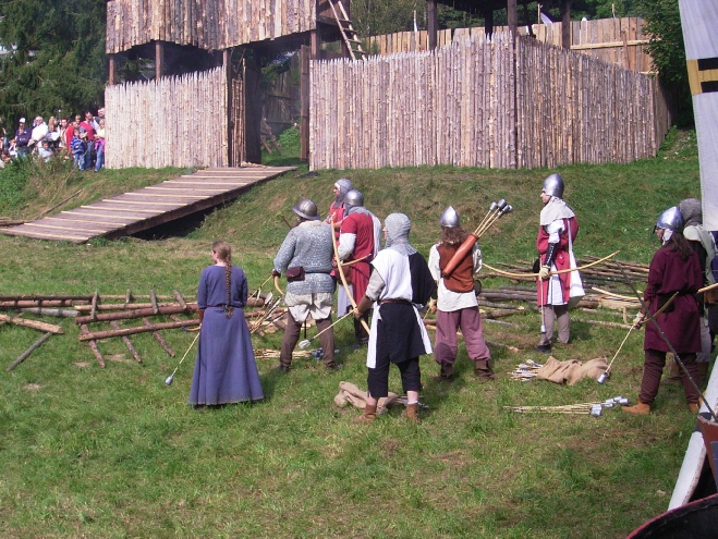 Ein leichter Helm, Gambeson, vielleicht auch noch ein Kurzschwert oder Falchion.