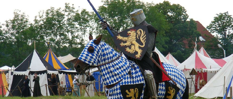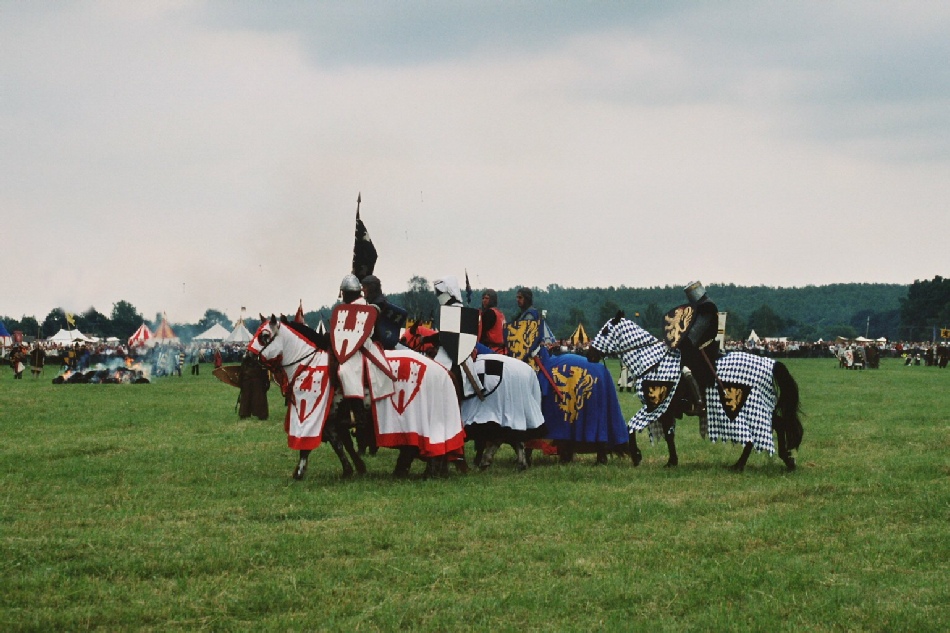 Der Boden erzittert vom Schlagen der Hufe, gepanzerte Reiter geschützt durch Schilde,